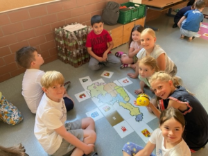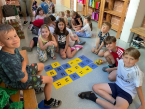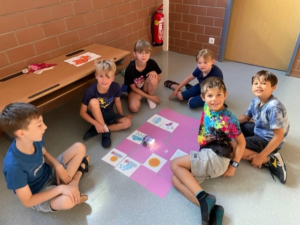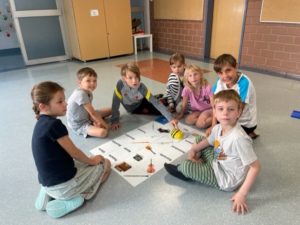 Als Abschluss dieses Schutzengerljahres arbeiteten die Kinder der 1a und 3a gemeinsam mit den bee bots. Es war gar nicht einfach die Wege richtig zu programieren!