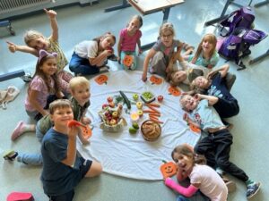 Am 3. Oktober feierten wir im Rahmen des evangelischen Religionsunterrichts ein kleines Erntedankfest. Jedes Kind war eingeladen, ein Stück Obst oder Gemüse in den Unterricht mitzubringen. Wir haben gemeinsam gedankt, geteilt und gefeiert. Danke den Eltern für ihre Unterstützung. Das Fest war eine Freude.
