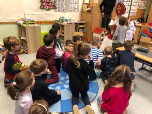 Die Kinder lauschten den Worten vom Nikolaus ganz gespannt und waren total stolz, einen kleinen Beitrag (Gedicht, Lied etc.) als Dankeschön präsentieren zu können. Für jedes Kind gab es eine kleine Überraschung und für jede Klasse ebenso ein Buch.