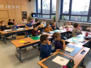 Alle unserer Klassen erhielten im Rahmen des Projekts Kariesprophylaxe von Apollonia Besuch von Kroko, welcher die Kinder beim Zähneputzen unterstützte.