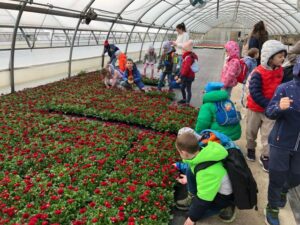Nachdem in der Vorschulklasse in Sachbegegnungen Blumen und vor allem Frühblüher besprochen wurden, besuchten die Vorschulkinder anlässlich dazu die heimatliche Gärtnerei Schonsky. Dort sahen die Kinder die unterschiedlichen Wachstumsstadien von Kindergarten bis Pension der Blumen. Jedes Kind durfte sich eine Blume und einen Frühblüher aussuchen und mitnehmen. Die Freude war groß!