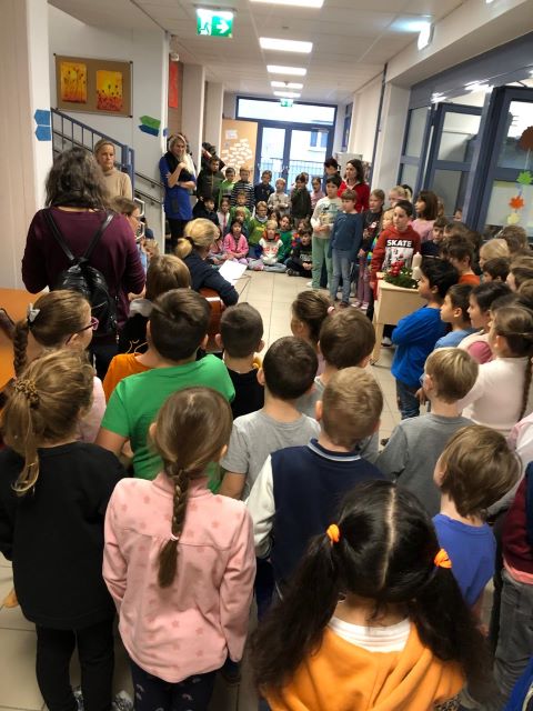 Jeden Dienstag im Advent treffen sich alle Klassen im Stiegenhaus um stockwerkübergreifend weihnachtlich zu musizieren. Ein schönes Zeichen unserer wertvollen Schulgemeinschaft.