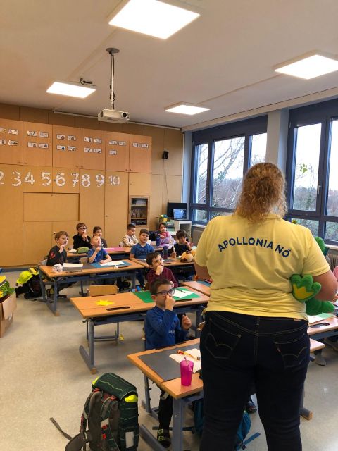 Alle unserer Klassen erhielten im Rahmen des Projekts Kariesprophylaxe von Apollonia Besuch von Kroko, welcher die Kinder beim Zähneputzen unterstützte.