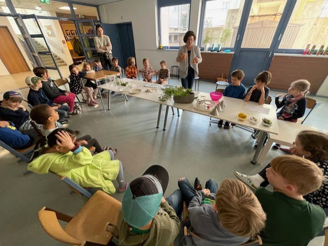 Ende April drehte sich in den beiden ersten Klassen alles um das Thema „Kräuter“. Zunächst wurden bekannte Küchenkräuter genauer unter die Lupe genommen. Jedes Kind setzte auch selbst Kräuter an.