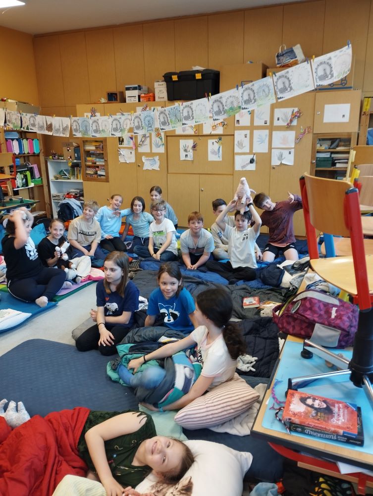 Im Mai veranstaltete die 4a eine Lesenacht. Das Highlight der Nacht war die Lesung der Autorin Elfriede Wimmer. Danach schmökerten die Schülerinnen und Schüler noch bis tief in die Nacht